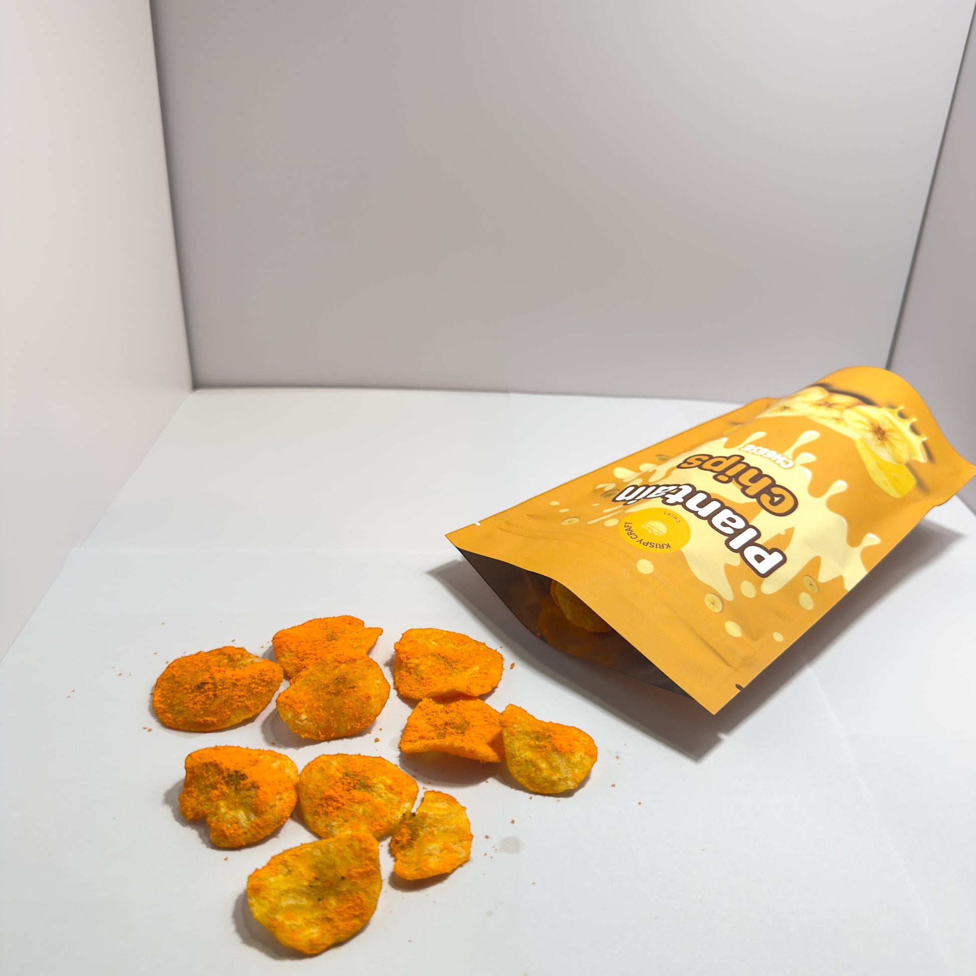 These premium plantains are sliced thin and cooked, they transform into crisp, golden chips that deliver a naturally hearty crunch and a taste rooted in centuries of tradition. Coated with the finest cheese powder. Each chip offers the perfect balance of crunch and cheesy goodness, making it a delightful snack for any occasion.